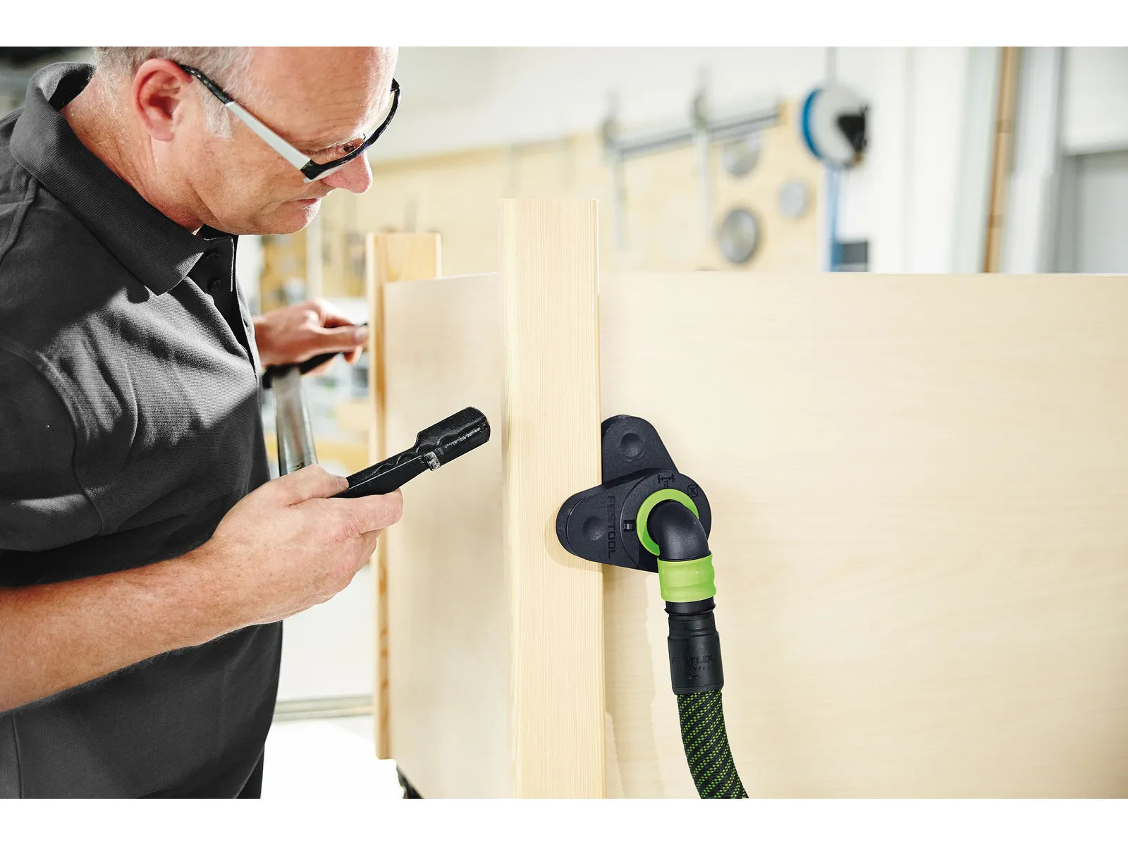 This vacuum clamping nozzle converts your dust extractor's suction power into a reliable holding force for lightweight materials. The compact design allows precise placement on work surfaces while the 3kg load capacity handles small to medium workpieces. Compatible with D 27 suction hoses, it integrates seamlessly into existing Festool extraction systems for improved workflow efficiency.